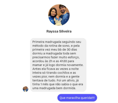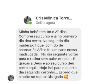 1 ano inteiro de encontros online ao vivo toda semana comigo para tirar dúvidas! Não tem bebê que não vá dormir com esse suporte!
